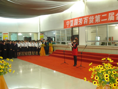 (主持人在現(xiàn)場(chǎng)宣布“寧夏國(guó)芳百貨第二屆合唱”節(jié)開(kāi)幕)
